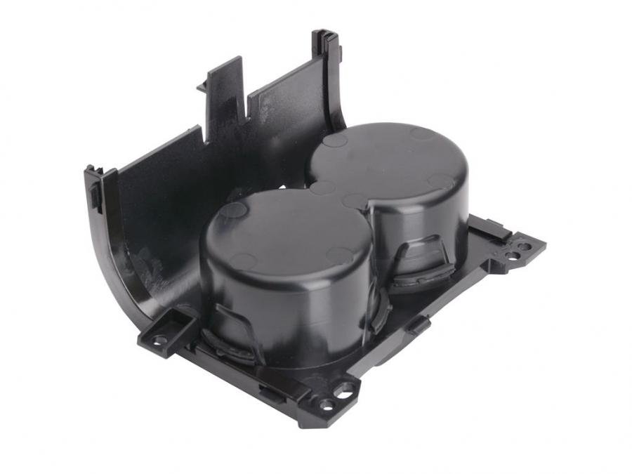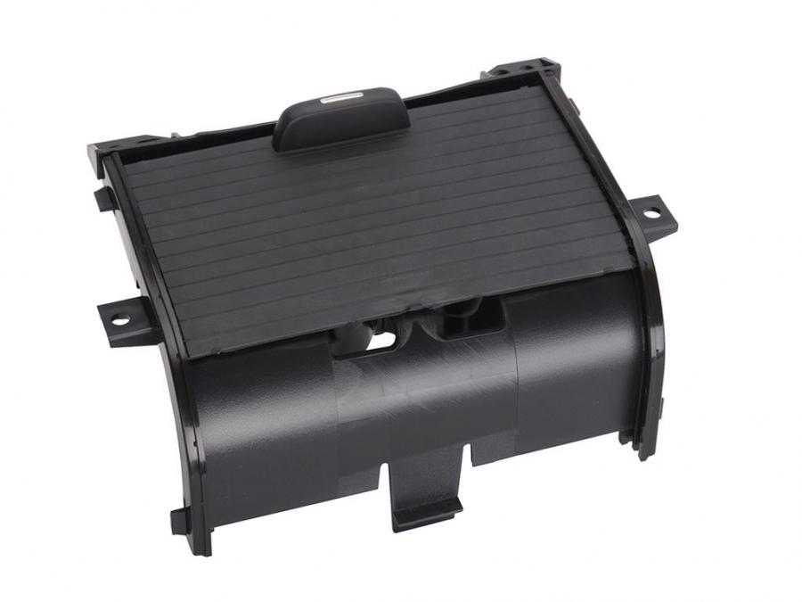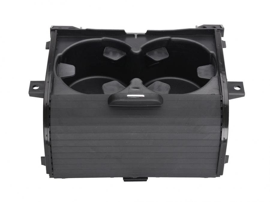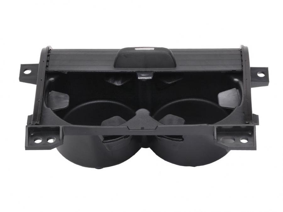 Reproduction C6 Corvette front floor console factory style cup holder. Includes black rubberized slider door with knob and rubber flaps that hold your cups in place, just like the original.