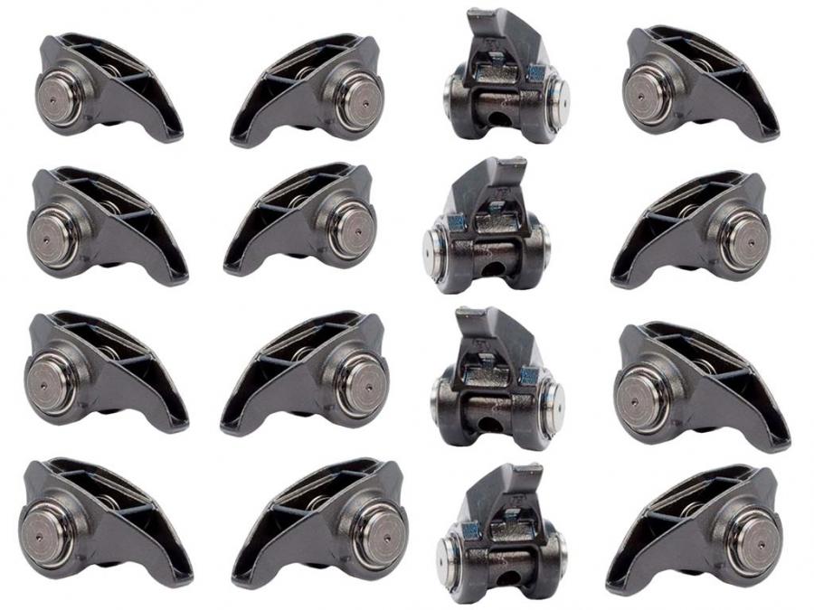 Comp Cams replacement LS Upgrade OEM Rocker Arms are designed to eliminate cageless needle bearing failure instock LS rocker arms when loads are increased. LS Upgraded OEM Rocker Arms feature a stronger, more durable trunnion and captured bearing design. Upgraded rocker arms increase lift capacity and utilize caged precision roller bearings for valve traindurability. The trunnions are secured by snap rings. Each upgraded rocker arm is made to meet or exceed OEM specifications of high-quality materials with a black-oxide finish for long-term durability.