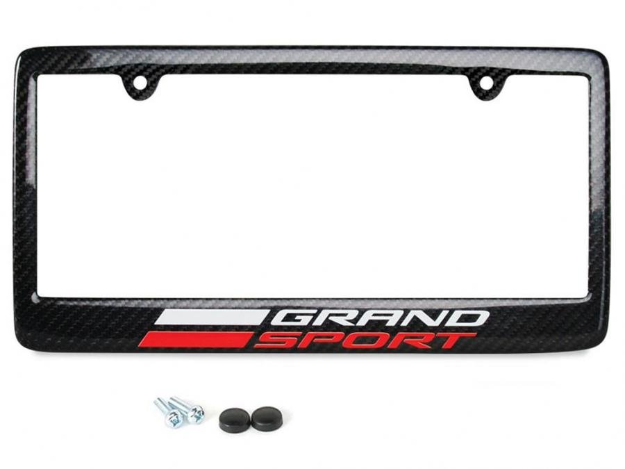 This C7 Corvette Grand Sport license plate frame is made of 100% real Carbon Fiber and super lightweight. This license plate frame includes license plate frame screws and black screw caps.