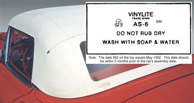 53-62 original equipment tops match the original factory convertible tops in every detail, and they are a must for the Corvette owner wanting exacting quality and originally right down to the washing instructions tag. All of our tops are crafted from the finest quality 40 oz. heavyweight vinyl material (where applicable) with black mildew-resistant fabric backing. The crystal clear, heavy-gauge rear window is sewn in for 53-59, and heat sealed in 60-62 as original.