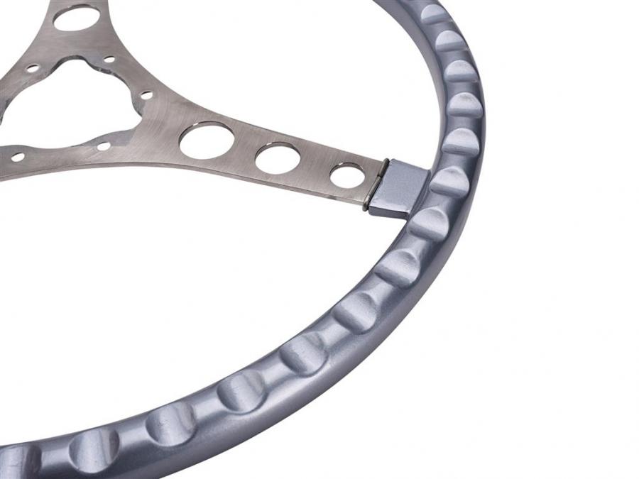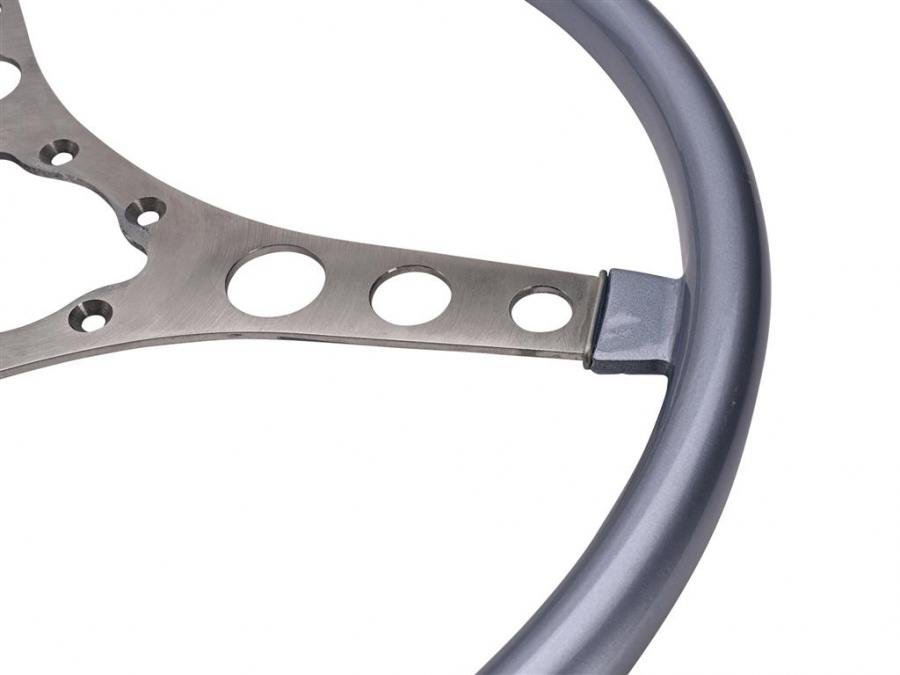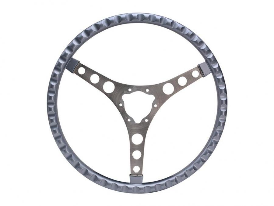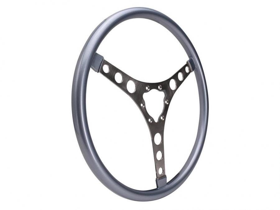 For upgraded comfort with a wheel that looks stock, this is thewheel to choose. The thicker grip size and 15" diameter are ideal for upgrading your classic Corvette. Plus this replica has a painted urethane rim that won't crack like the original plastic design. The polished stainless steel spokes add another level of authenticity and you can use the stock horn cap with this wheel.