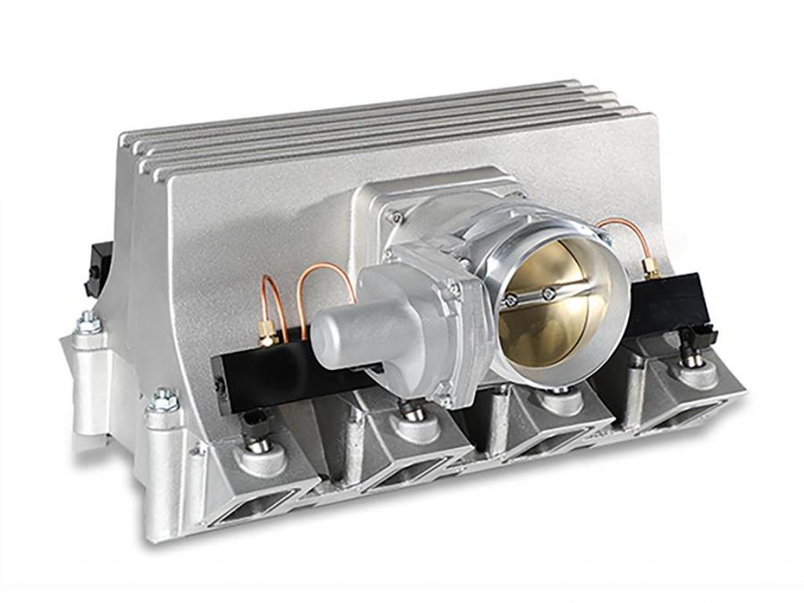 The systems utilize GM LS3 OEM fuel injectors and GM four-bolt, 92mm, drive-by-wirethrottle body (not included.) Compatible with GM and aftermarket ECU’s and harnesses that support drive-by-wire and speed density tuning. Manifold kits are also available to work with rectangular port LS cylinder heads. Made in the USA.