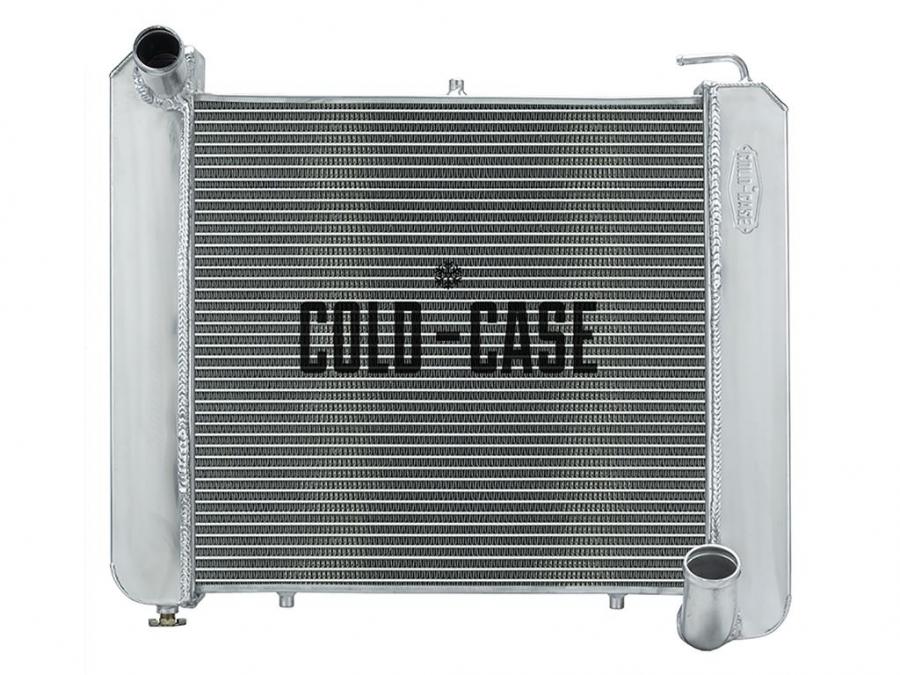 This C1 Corvette COLD-CASE radiators is Tig welded 100 percent aluminum and absolutely beautiful. Don't buy a 3 or 4 row aluminum radiator! It doesn't cool as good as these oversize 2 row models. These radiators are original appearing and have the correct stamping. Once painted, you'd be hard pressed to find a difference over an original versus a COLD-CASE.