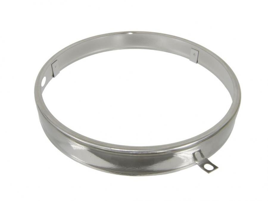 When using replacement bulb cups on your 1958-1963 Corvette, replace the bulb mounting rings with our stainless steel headlight bulb retaining ring. This C2 C3 bulb retaining ring's outside diameter measures 5 7/8 inches. The ring has three mounting tabs and slots for spring hooks.