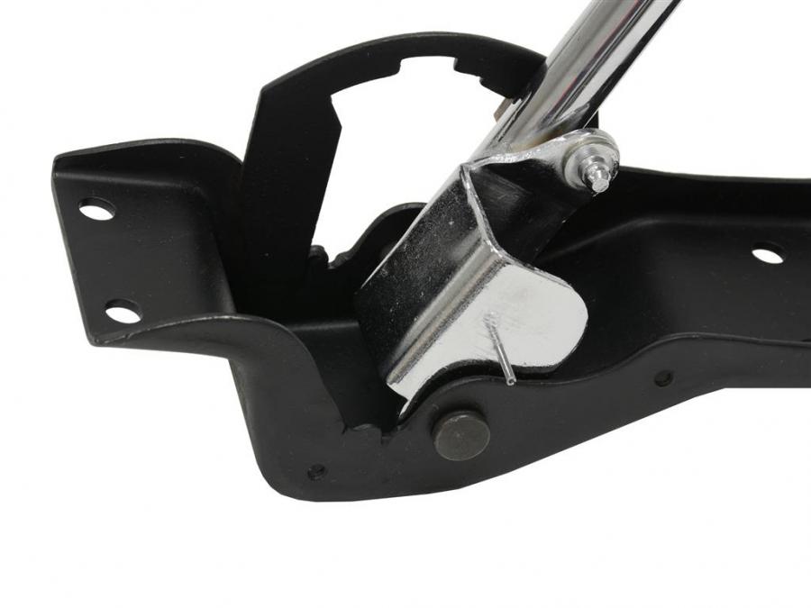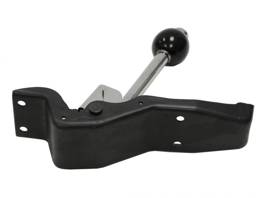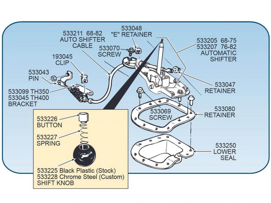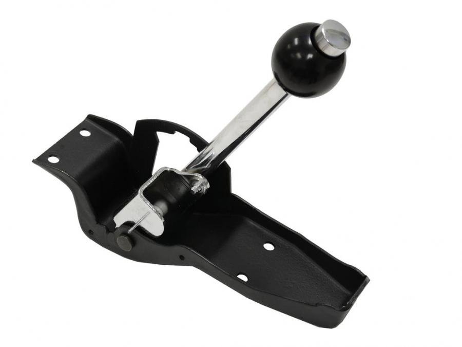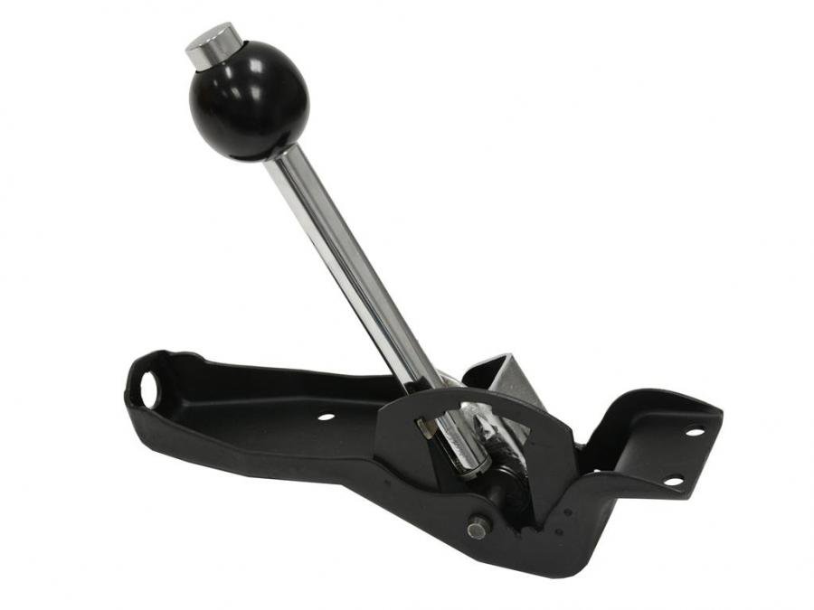 Original base is stripped and painted. Original handle is stripped and chrome plated. Complete shifter looks and operates as new.