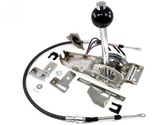 The shifter connects to the transmission with an included cable linkage. The cable mounts to the transmission with the provided pan bracket (case mounted on 6L80E, 6L90E, & 8L90E) and the correct length shift lever(s) is included as well. We even install the neutral safety / back up light switch and adjust it for you, o it's ready to simply wire into your Corvette.
