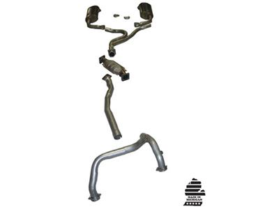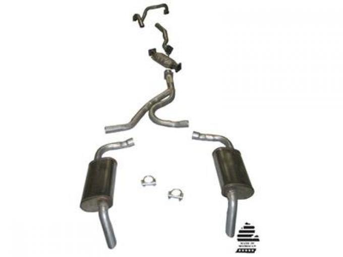 Hangers not included. Exhaust system components are made from 14 gauge (.070) aluminized pipe. Stock exhaust system with hideaway muffler.