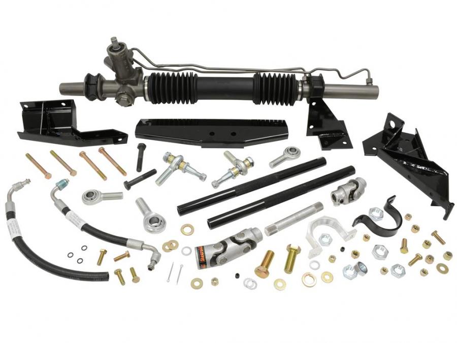 Kit includes everything you need to complete a well-engineered conversion, except a power steering pump. Re-use your existing pump or a stock pump and brackets for your application. This system will clear aftermarket tubular headers. Bolt-on installation requires no welding, cutting, or drilling and installs with basic hand tools in about three hours.