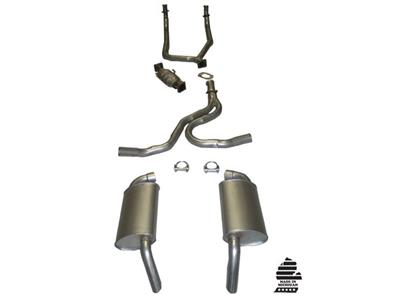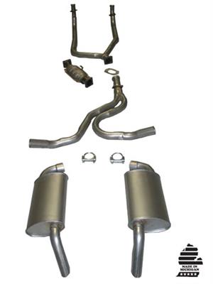 Hangers not included. Exhaust system components are made from 14 gauge (.070) aluminized pipe. Exhaust system comes with the hideaway mufflers as from the factory.