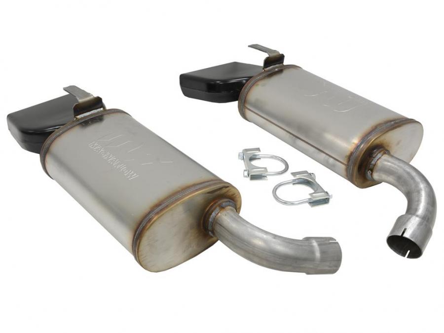 100% stainless steel muffler case and perforated stainless steel straight-through core design delivers improved performance, reduced resonance, power and durability along with a smooth deep tone. The unique straight-through design produces unrestricted flow with greatly reduced back pressure and maximum sound control.