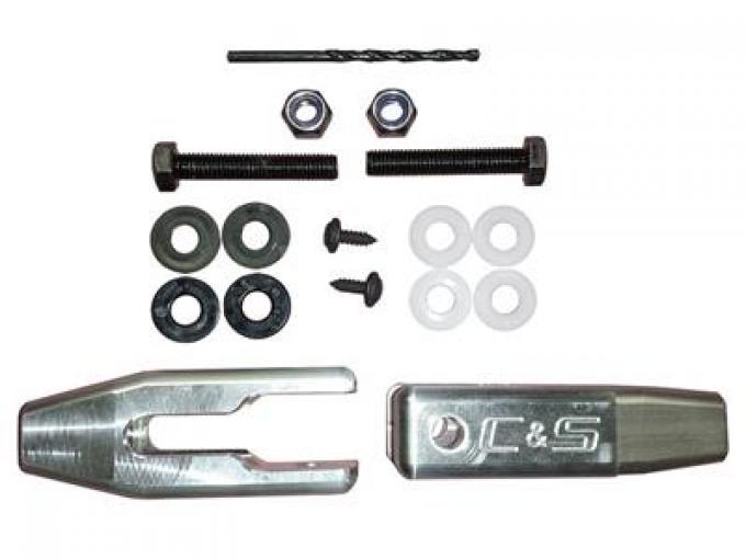 The clevis actuates your up/down movement at the front and the rear of the seat. The original clevises were made of plastic but tended to disintegrate with age or shatter under load. This kit replaces the broken or worn clevises and stabilizers on any C5 or C6 Corvette power seat track. These custom U.S.-made T6061 Aircraft aluminum replacements will never break, and installation doesn't require seat track disassembly! This kit fixes one seat.