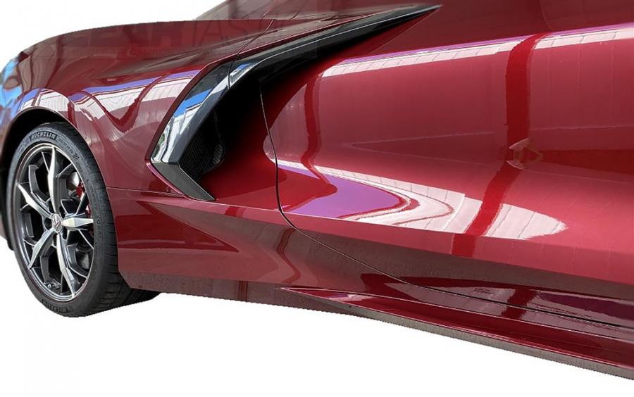 With all the C8 Corvette beautiful curves and protruding body lines, there are so many vulnerable areas prone to getting hit & peppered by rocks and stones. You will find that the rear rocker, the lower door and the side air duct all protrude outward and are right in the line of fire for on coming debris. This kit is designed to create an invisible barrier to protect all 3 of those areas.