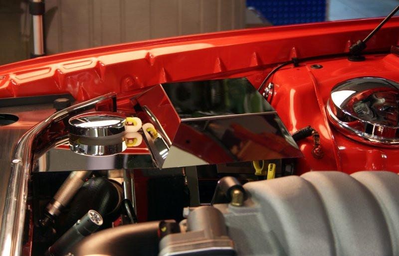 Get the mirror finish look for your engine bay with our polished Challenger Fuse Box Cover for your 08-14 5.7 and SRT 6.1. Each stainless steel engine dress up accessory we create is designed to fit over the stock engine part giving your ride a truly unique, clean, show winning look.
