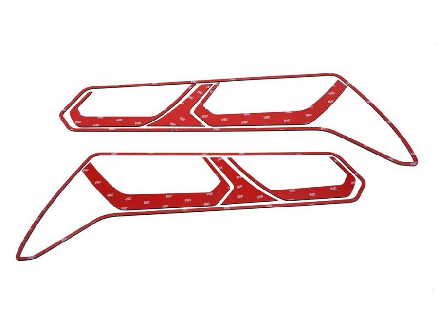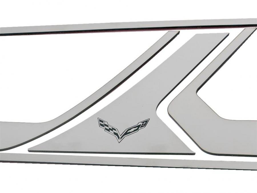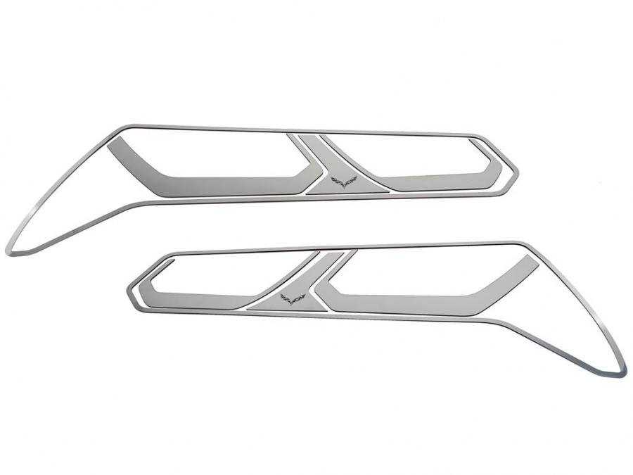 Polished Stainless Steel Tail Light Bezels with Etched Emblem by American Car Craft, 8 Pieces. Dress up your Corvette with stainless steel Tail Light Bezel Trim with Etched Corvette Emblem. These trim pieces are designed to fit over the rear tail lights and add a clean stylish look to your C7 Corvette exterior.