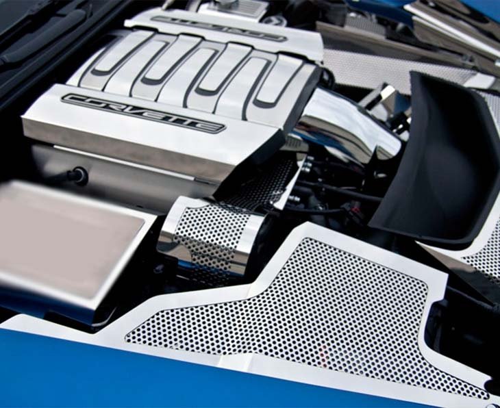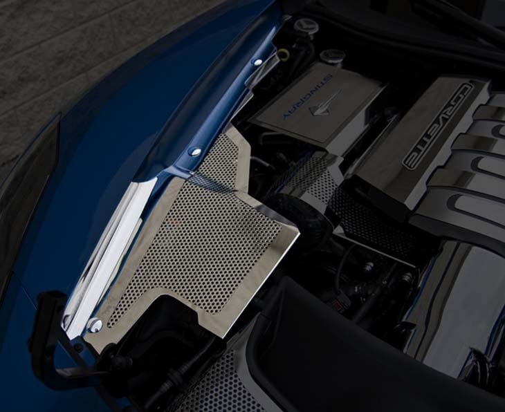 Dress up your Corvette with our 3 piece Stainless Steel Polished Perforated Fender Covers. These trim pieces are designed to fit all 2014-2019 Corvettes on the inner fender. Polished version compliments our Polished/Perforated Corvette Stingray Alternator Cover - 053049.