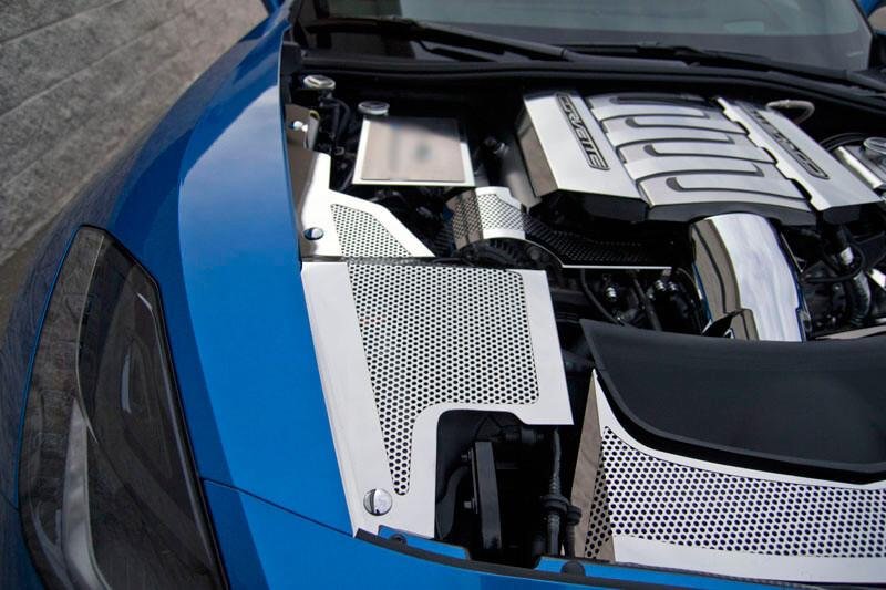 American Car Craft 2014-2019 Corvette Z06/Grand Sport/C7 Stingray - Inner Fender Covers 3Pc, Stainless Steel, Perforated Polished Finish 053041: