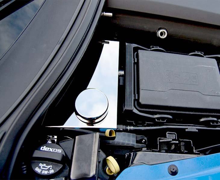 Dress up your Corvette with our Polished Stainless Steel Water Tank Cover. These trim pieces are designed to fit all 2014-2019 Z06/ZR1/Z51/C7 Corvettes over the water tank and add a clean stylish look to your Corvette engine bay.