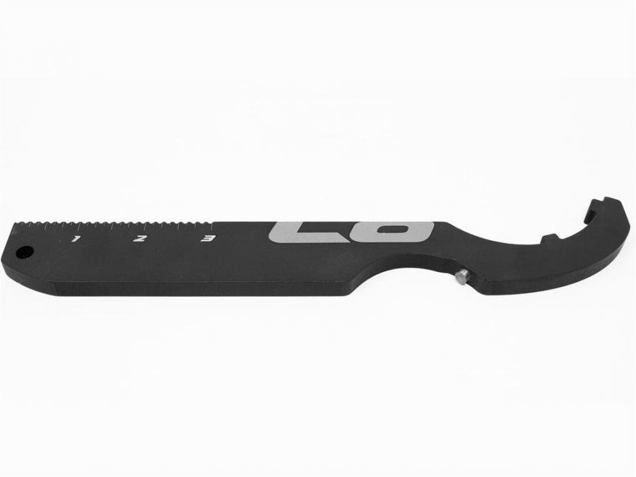 The asymmetric teeth allow the wrench to rotate in the spring collar during adjustment. The long circumference handle prevents slippage on the spanners while rotating. A contoured handle distributes pressure and increases comfort in the hand. An integrated scale and flat bottom allow precise adjustment measurement and prevent the collar from spinning.