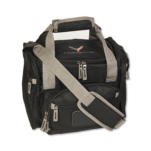 2020 Corvette Cooler Bag Rugged denier polyester, insulated, removable waterproof lining in main compartment. Two zippered end mesh pockets and two zippered front pockets, 12 can capacity. Embroidered 2020 Corvette emblem. Size: 13” L x 9” W x 9” H