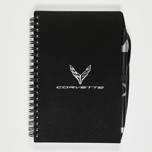 2020 Corvette Spiral Bound Journal Book Plastic spiral bound journal lined 70-page notebook with business card pocket, sticky notepad, and 5 flag pads(25 flags). Includes a Stylus twist action pen. Size: 7” H x 5” W