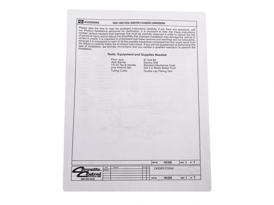 For safe operation, a dual master cylinder is required for Disc/Drum systems – See our part numbers, 191189 or 191226. For complete kit including disc conversion, master cylinder, valves and lines see, 191167 or 191214