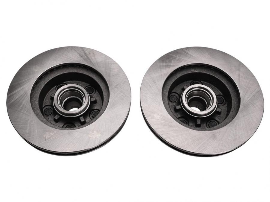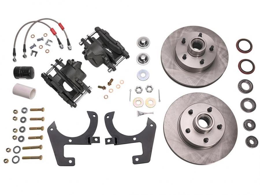 Kit includes: Front Disc Brake Rotors, Calipers with hoses and mounting brackets. Also includes hub bearings with special spacers, and all mounting hardware
