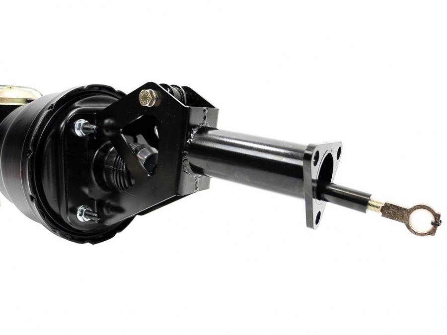 Power Brake Booster Master Conversion Kit for 1953-1962 Chevrolet Corvette applications. This kit allows for a power apply system that will work better with factory drum brake cars along with cars upgraded to disc brakes of any variety. The kit features a black e-coated bracket, pivot and push-rod supporting a black powder coated booster with a black chrome dual master cylinder for a clean look. Kit includes new vacuum line, manifold fitting, bleeder kit and all necessary mounting hardware to attach to your factory pedal.