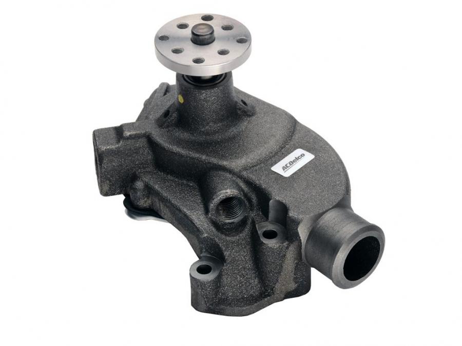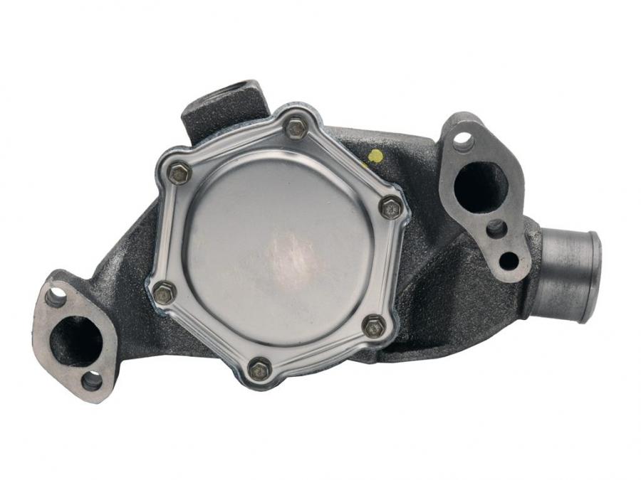 New replacement water pump that has a 3/4" bypass outlet. This is a short pump (as all Corvette pumps are) for a small block engine.