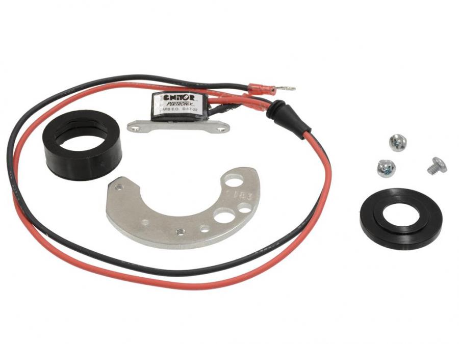 The Ignitor solid-state electronic ignition system uses rotation cobalt magnets mounted on the distributor shaft to trigger an electric switching module for higher output up to 35,000 volts. Ignitor eliminates the points and condenser and promotes increased plug life; better fuel economy and stable timing. Ignitor systems are backed by a 30-month warranty.