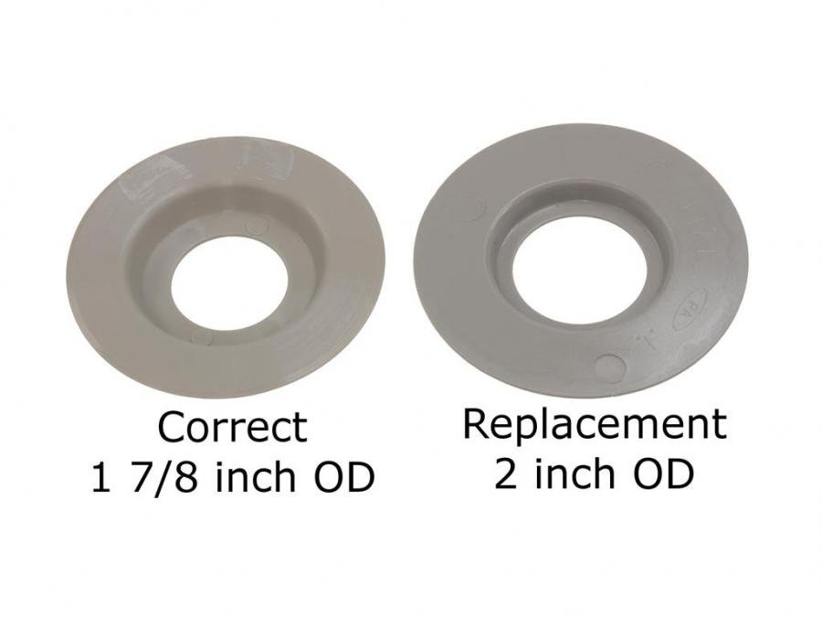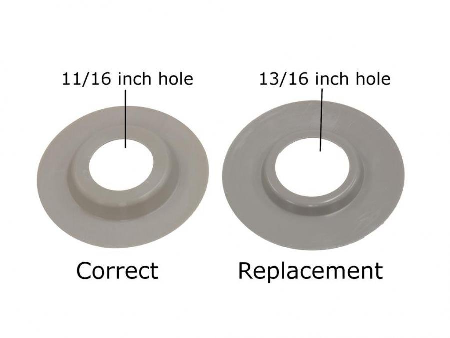 These round stepped plastic discs mount behind the window or vent window crank handles to prevent handle from marring the door panel or spacer when winding the window up and down. 1963-1967 use 2 pair if no power window; 1968-1979 use one pair of no power window.