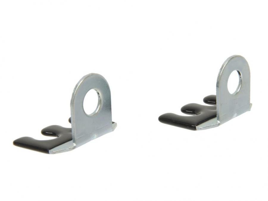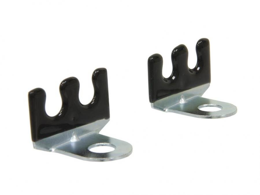 These spark plug wire retainers are installed directly below the first and second spark plugs on both sides of the engine. They are held in place by the same bolt that secures the front heat shield.