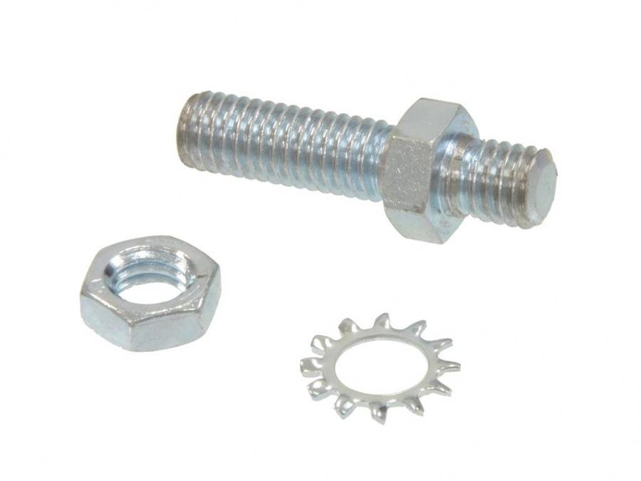 3/8-16 Threaded Stud. Includes jam nut and washer. Double ended threads, used to mount brakets to intake manifold