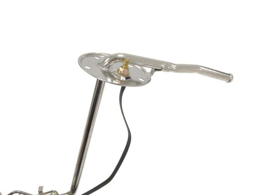 This 1961-1962 C1 Corvette fuel meter (sender) has a range of 0 - 14 Ohms. This fuel gauge is like an OHM meter in that it measures electrical resistance, the higher the resistance, the higher the needle goes. When the float is "down" resistance as measured with an ohm meter, is near 0. With the float "up" resistance is about 14 Ohms