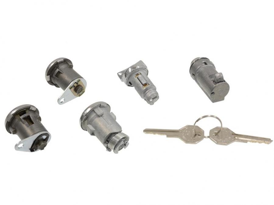 All locks have correct faces, sets are keyed alike with original type keys. Set includes ignition cylinder, glove box, 2-doors and trunk locks with keys