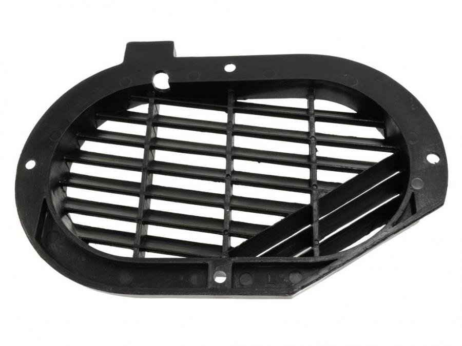 Black plastic grille with mounting tab for the vent cable to attach to.
