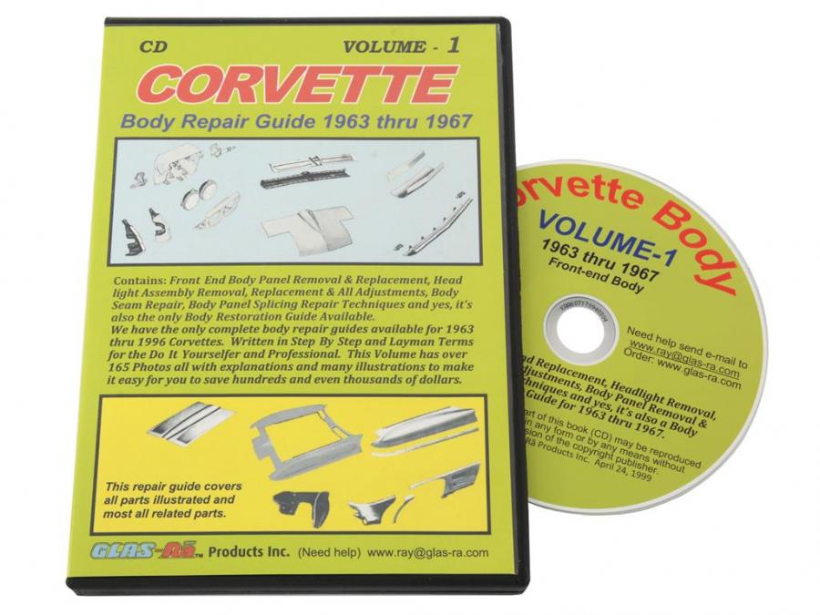 If you or your body shop are going to make fiberglass repairs to your 63-67 Corvette then this Volume I CD Repair Guide is a must have. Front Body Repairs are covered in this Volume 1-112 pages with more than 165 large black and white photos. This CD will guide the reader in techniques used for fiberglass repairs and panel replacement specifically for the 63-67 Corvette. Written in a step by step format for both the do-it-yourselfer and the professional.