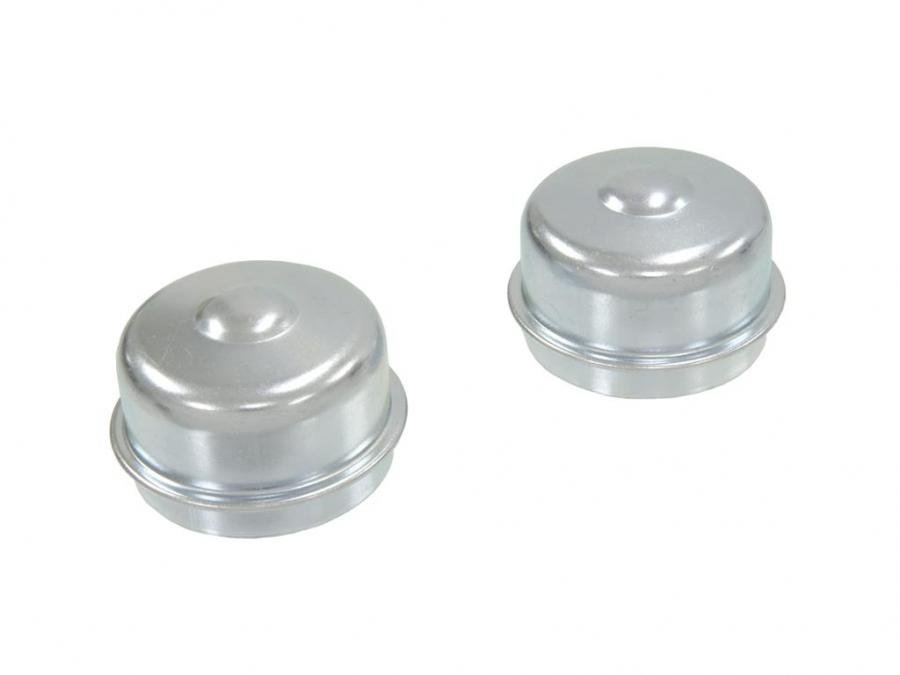 Stamped steel reproduction of original wheel bearing button style dust cap. Cadmium plated. Packaged as a pair.