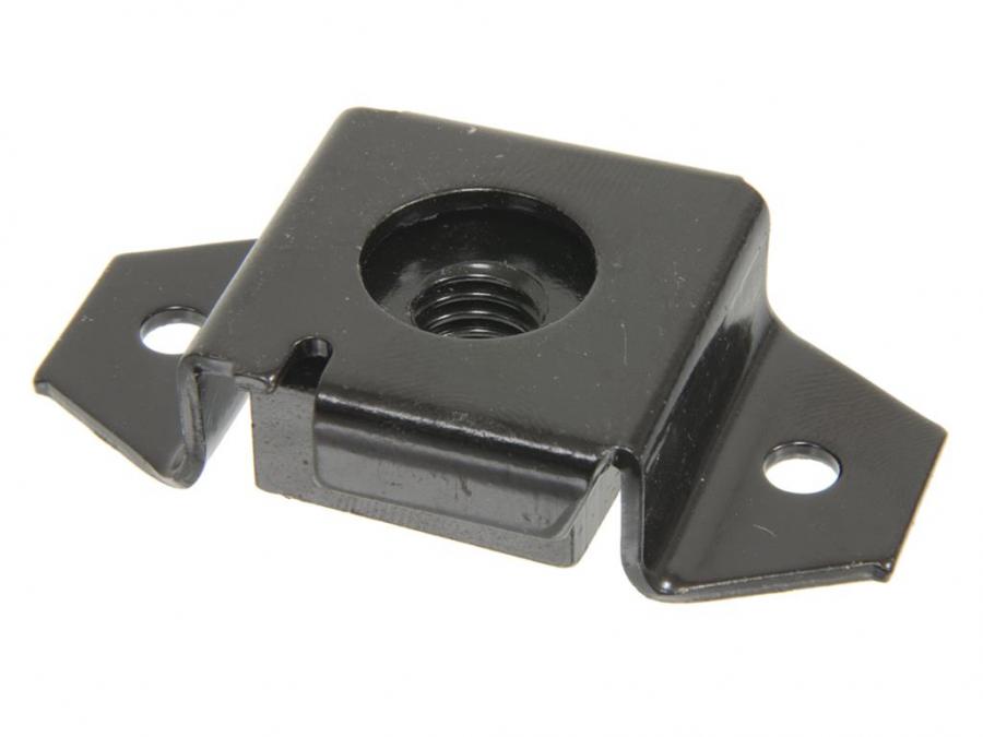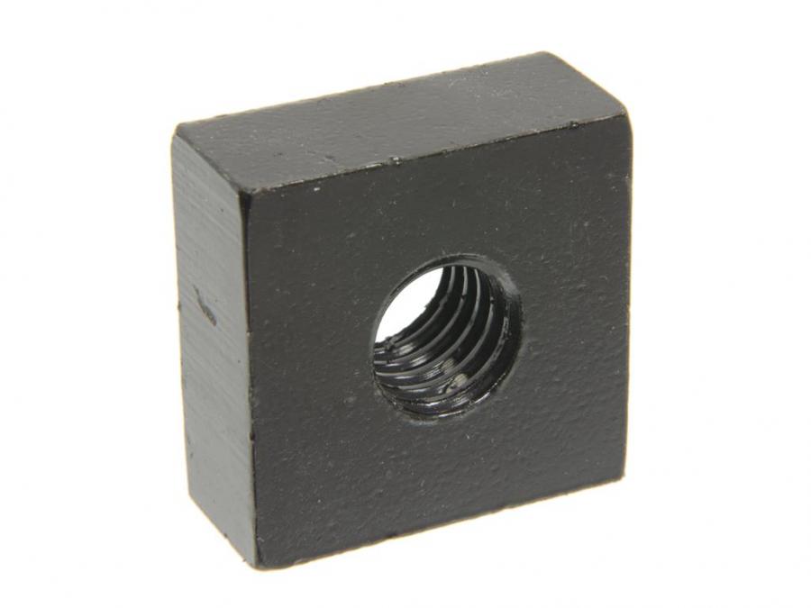 This body mount nut is 1 inch square x 7/16 inch thick. The threaded hole is 7/16 inch x 14 thread.