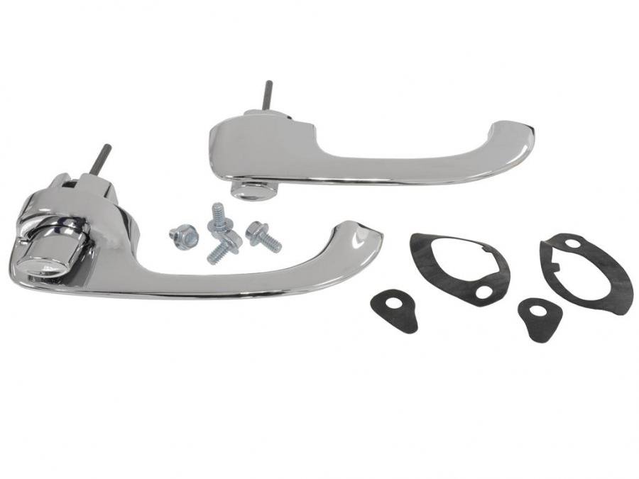 1964 Late -1967 Corvette complete chrome handle assemblies, including buttons, springs, gaskets, and screws. Reinforcements not included. High quality reproduction.