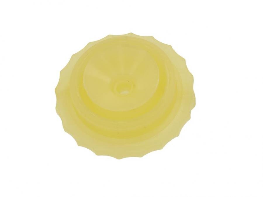 Factory replacement 1965 and 1966 Corvette Master Cylinder Cap. Features the factory correct markings and just the right amount of yellow haze that makes these caps a show winner! Too white just ain't right. Those N.O.S. caps will cost you points!