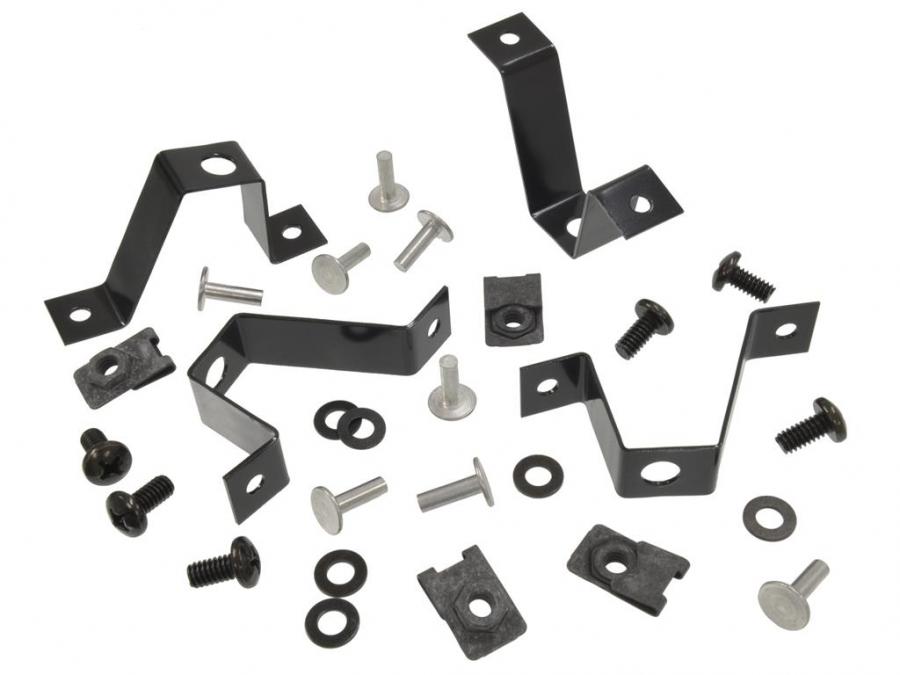 Includes 4 brackets with all hardware; including nuts, screws, and aluminum rivets, for mounting the 1965-1967 grille to the inner fender.