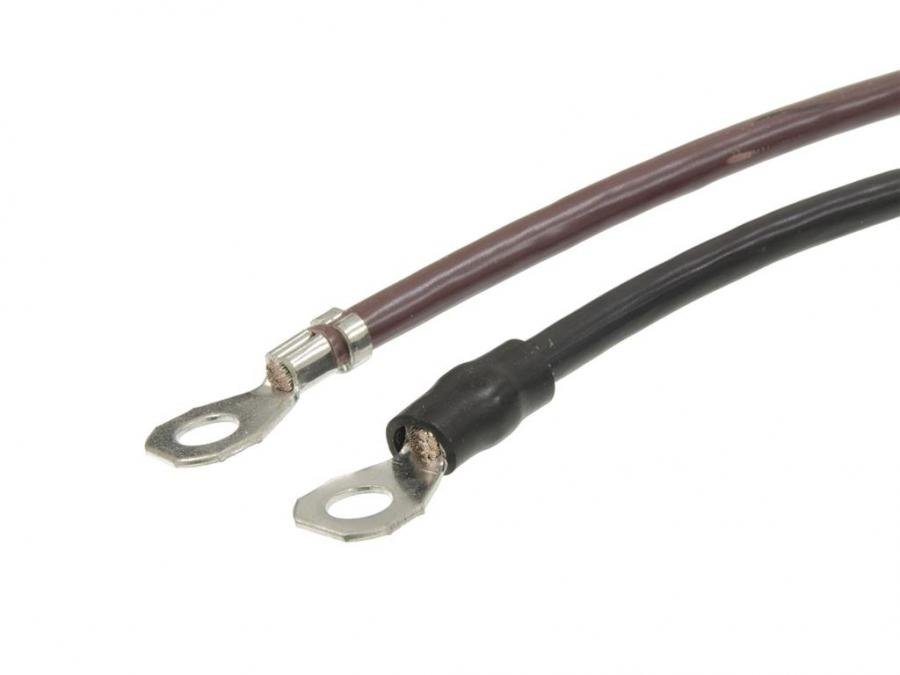 Always refer to a factory service manual when diagnosing engine service problems. You can damage electrical components if the proper procedures are not followed. Be sure you are replacing the correct part.The black positive cable measures 18 3/4 inches long. The brown negative cable measures 24 1/2 inches long.