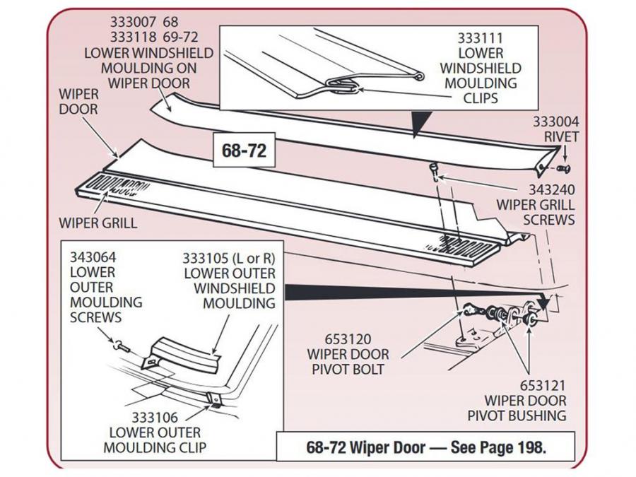 These retainer clips are used to mount the lower outer windshield mouldings ( CC #333105 ) to the fender