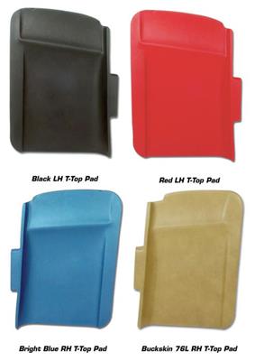 68-82 T-top panels are constructed of vinyl with an ABS substrate. Panels are correct in every detail, including attached original style hardware. 68-73 panels include larger area for sunvisors. For 76 late, the protruding area between latches tapers from 1-1/8 to 3/4 verse a constant 1/2 on the early design. T-top center panels are also correct in every detail. 1976 early did not use a pre-cut dome light opening; late 76-82 use this option.