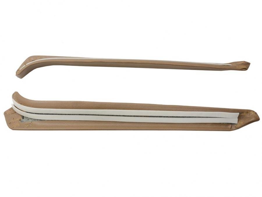 Eliminate the scratching and pinching caused by the cracked vinyl on your door armrests. Our door panel armrest repair kit is a quick, easy, and inexpensive alternative to replacing the whole door panel. Molded from fiberglass and covered with stock vinyl in most interior colors from 1968-77. Strong double-stick tape holds this piece to your door so there's no glue mess. Instructions included. Specify year and color. Sold in pairs.