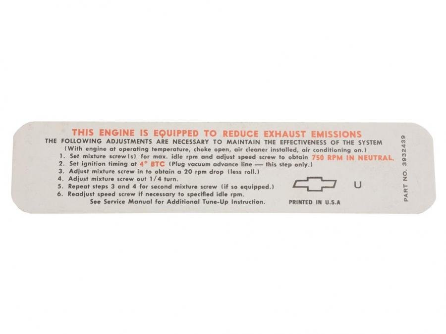 68 Emission Decal - 68 Early 350 HP: