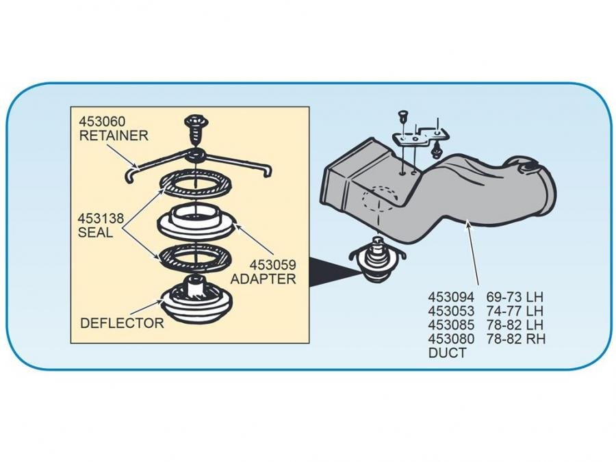 69-73 drivers side outer underdash air contitioning black molded platic air flow outlet duct. Incldes lower deflector