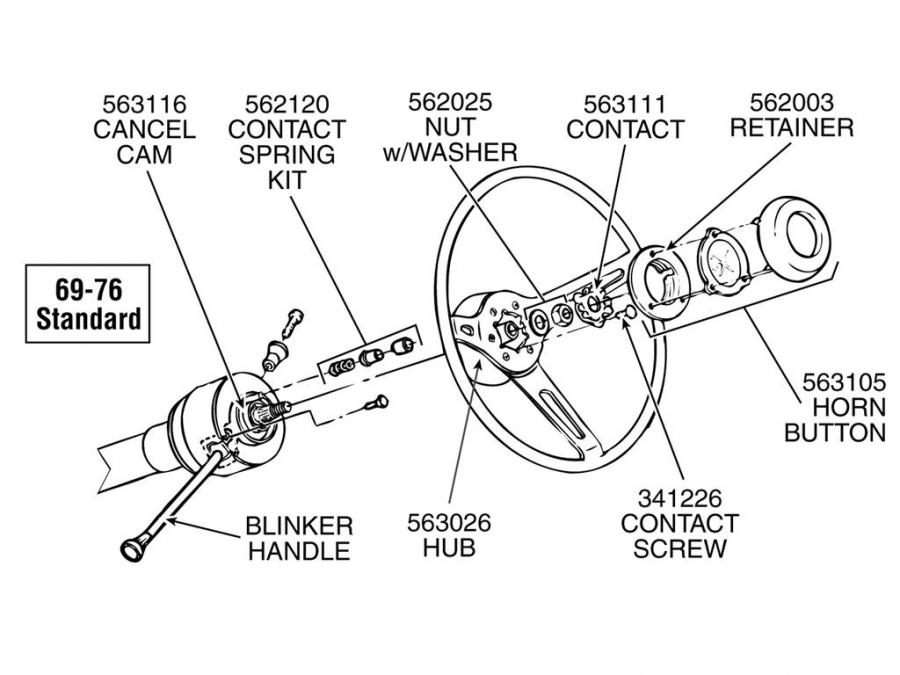 C3 Corvette horn cap mount and horn contact assembly for cars without the tilt & telescopic steering wheel.
