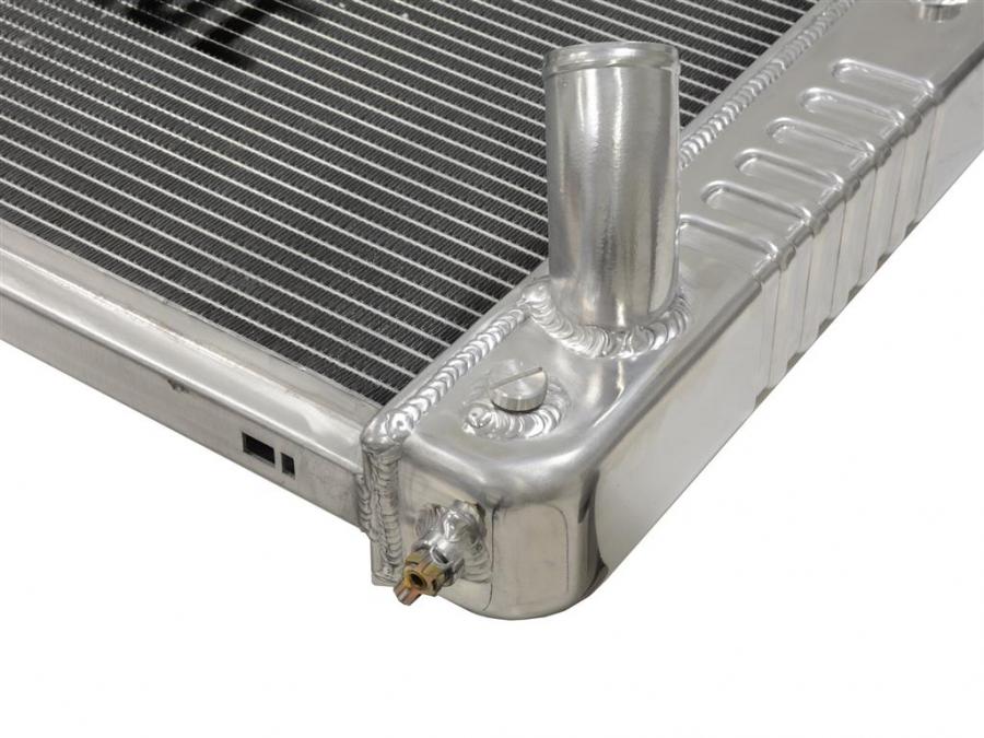 Note the clean Cold Case look where welds are on the inside of the tank instead of the outside. No Epoxy! (Some manufacturers use epoxy to seal the tanks to the cores). Also note the ability to install an original looking radiator cap on Cold Case Radiators.
