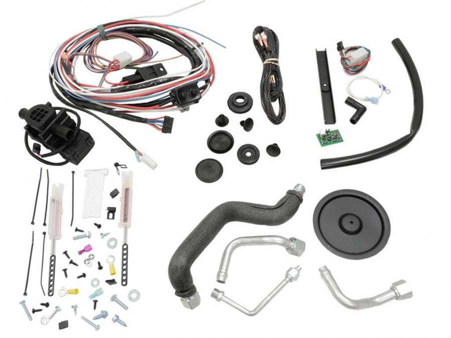 Compete kit includes: evaporator, condenser, drier, compressor, compressor bracket, hose kit, and binary safety switch.